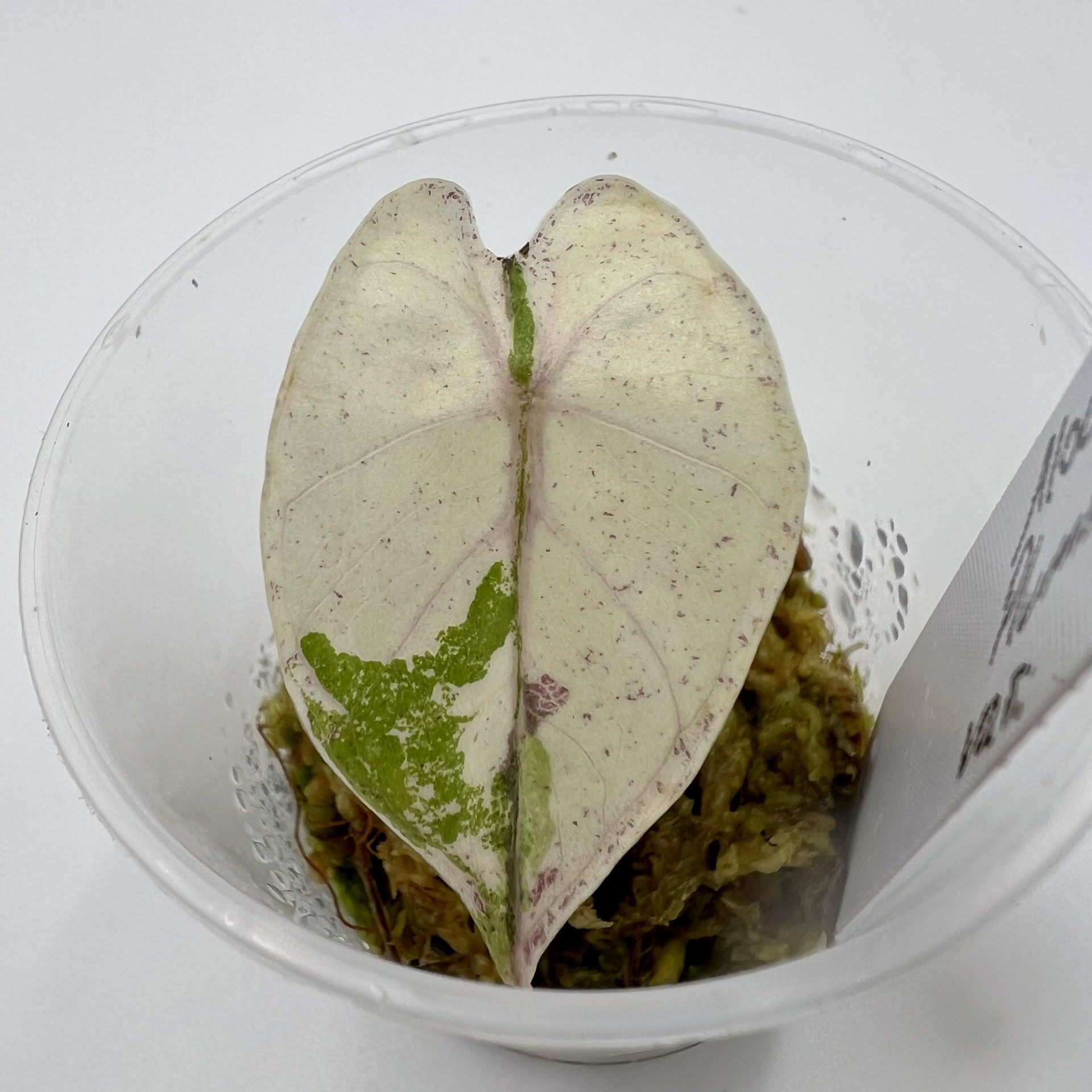 Zu erwerben ist eine bewurzelte Knolle mit mindestens einem panaschierten Blatt.