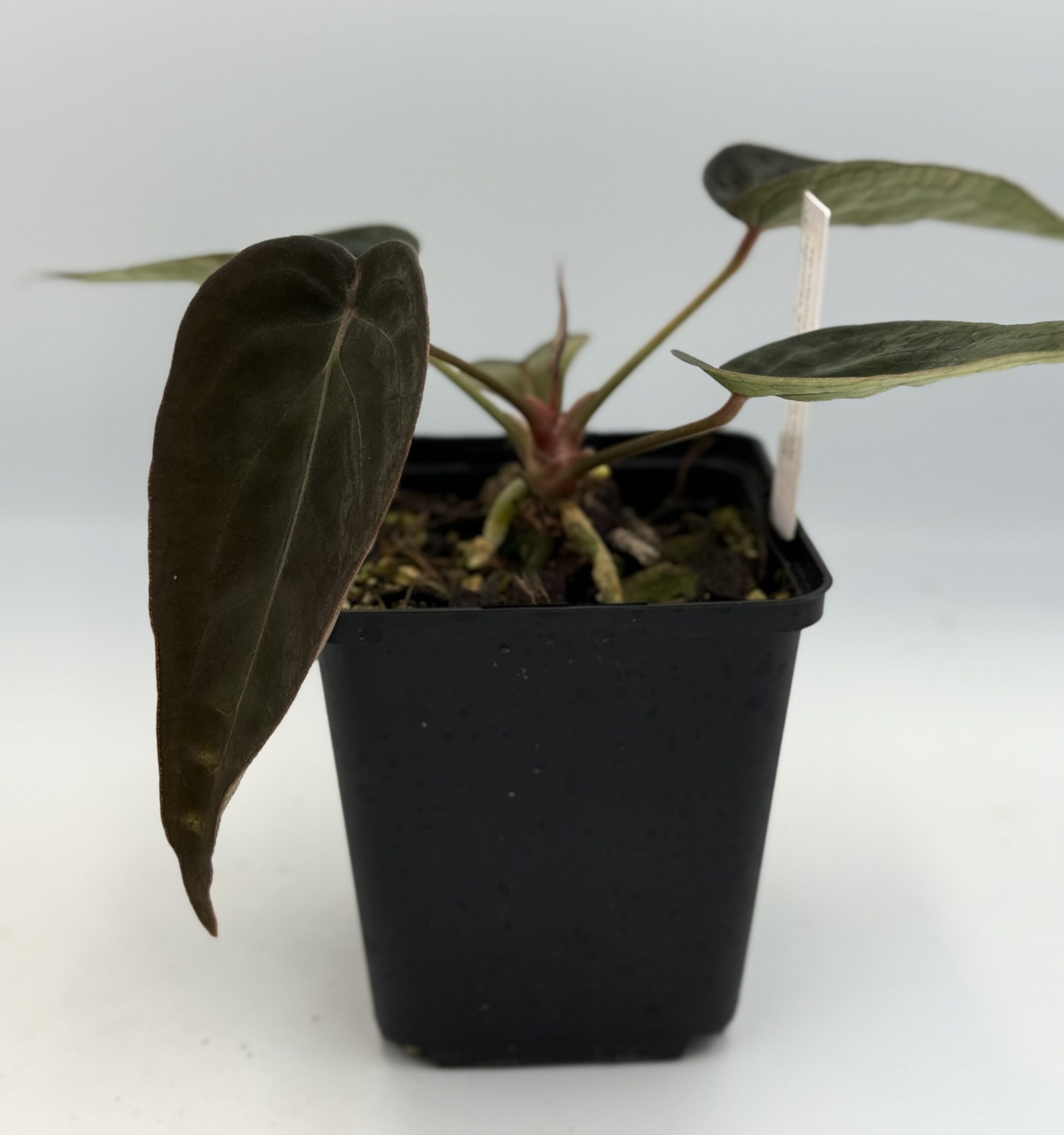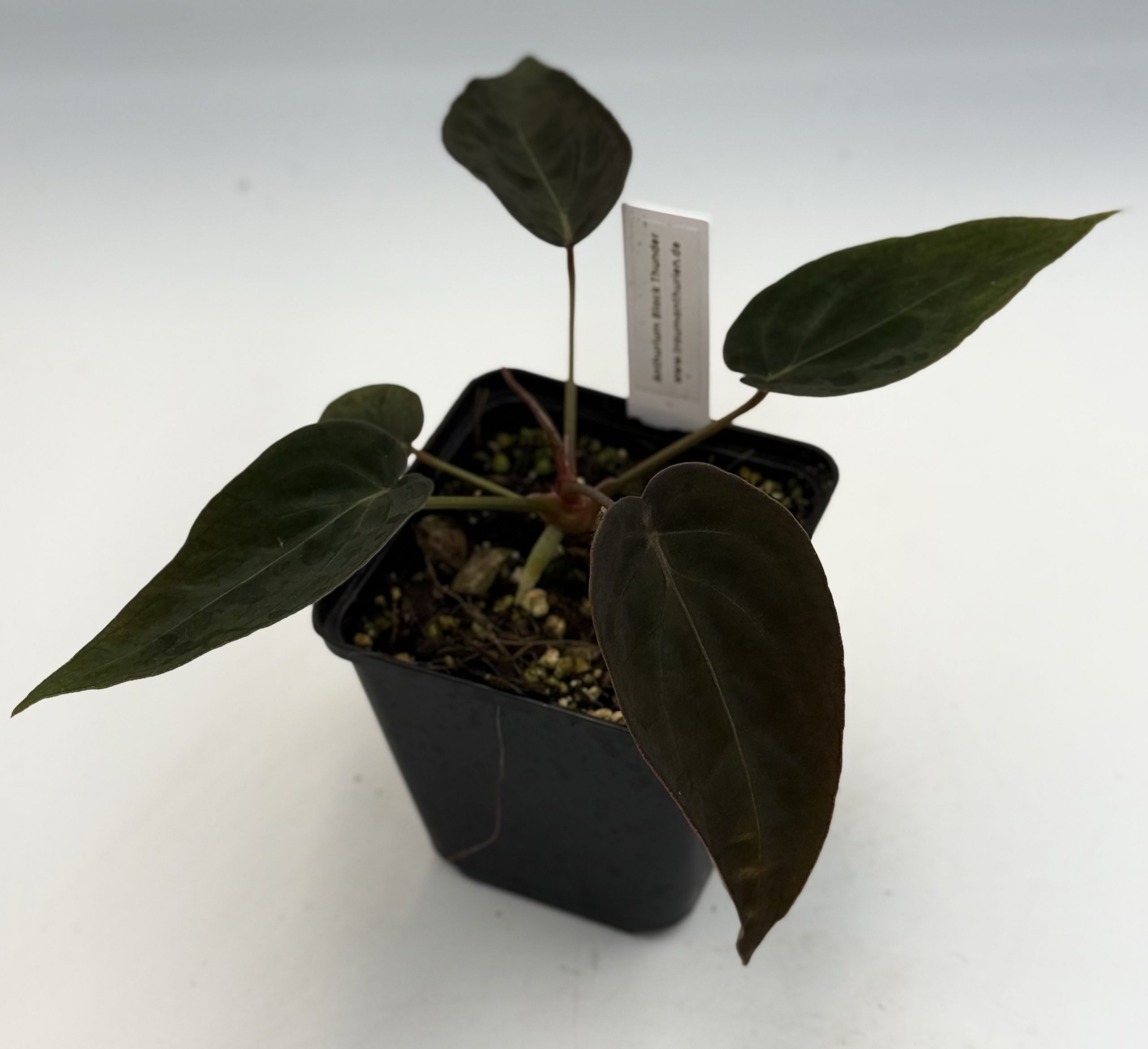Angeboten wird eine Anthurium “Black Thunder” – eine eigene Selektion aus einer Labor-Testreihe. Die genaue Abstammung ist daher nicht eindeutig bestimmbar.