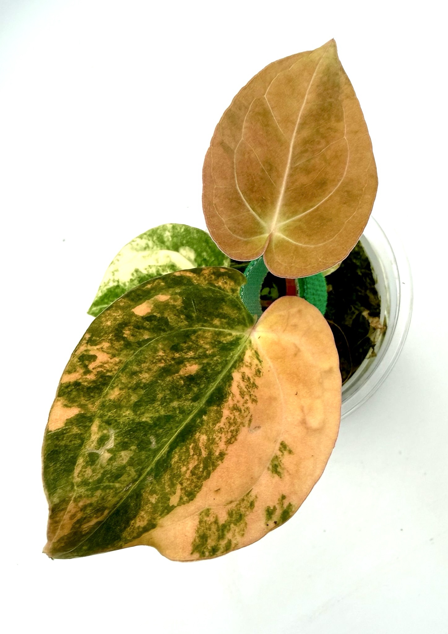Etabliertes Cutting der sehr seltenen Anthurium Black Venom Variegata.