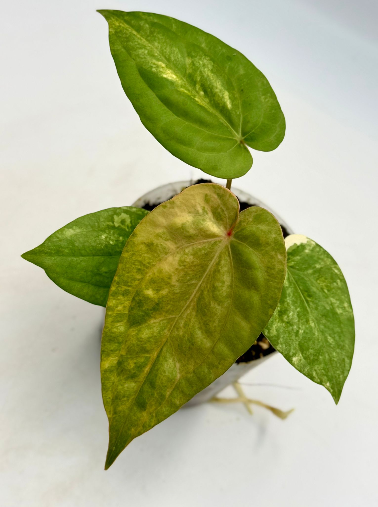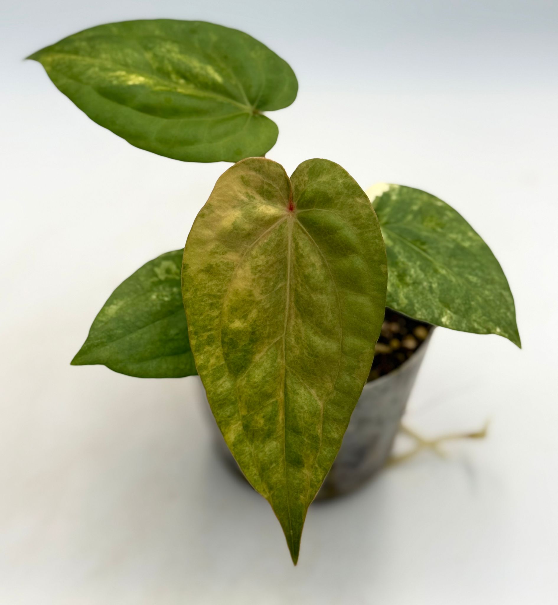 Angeboten wird diese Anthurium Papillilaminum Variegata x Luxurians.