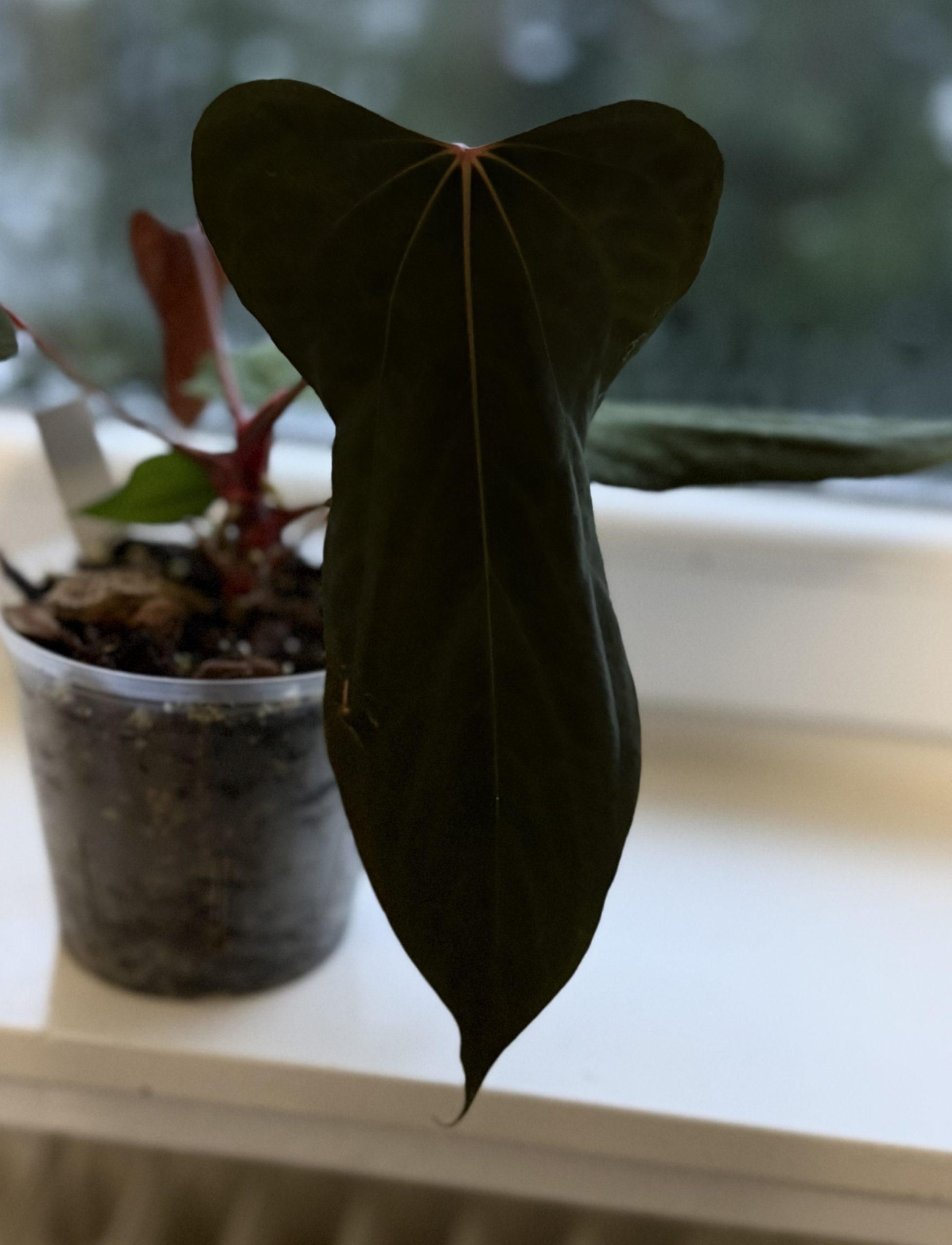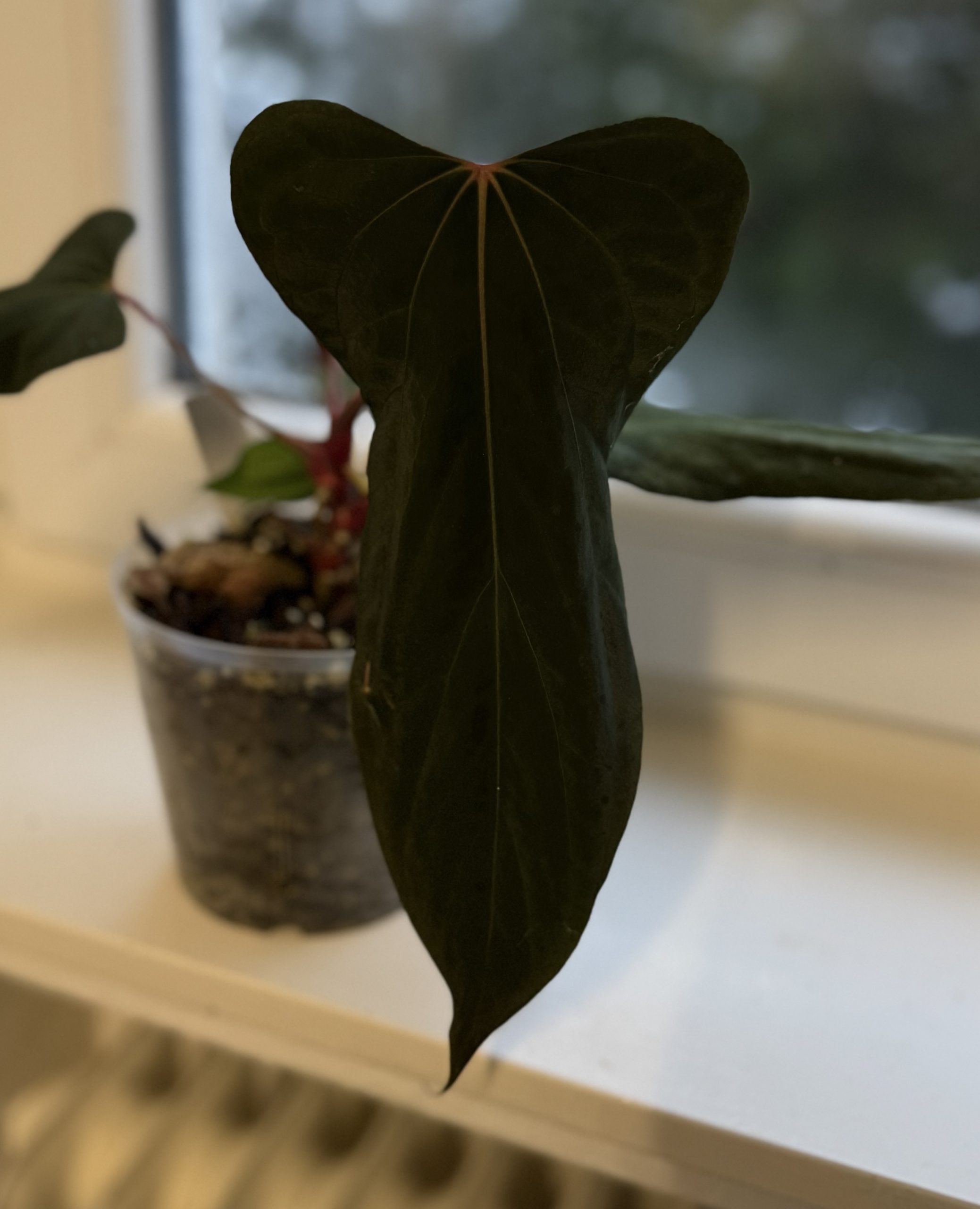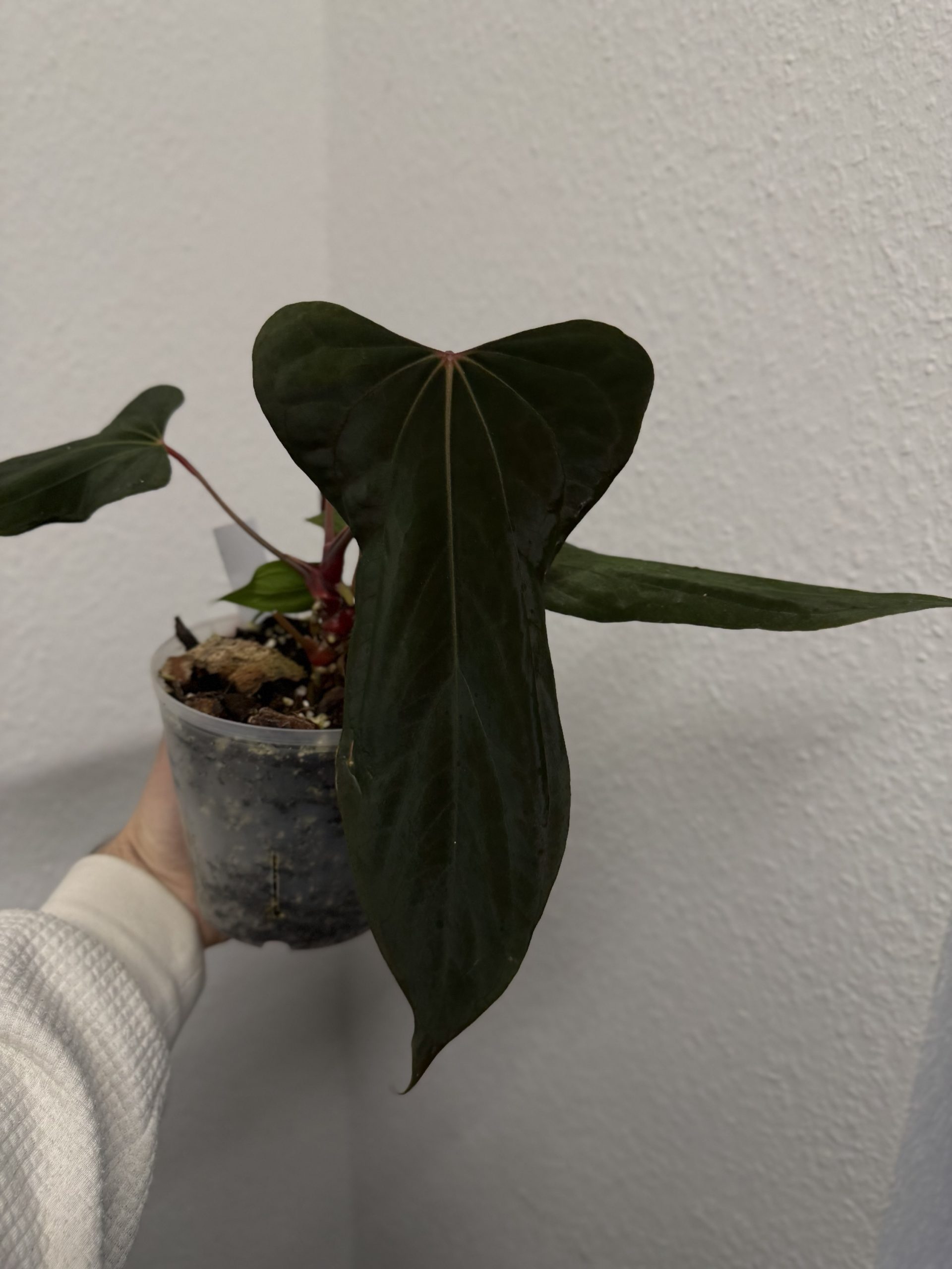 Angeboten wird ein Clone Cutting mit Neuaustrieb der Anthurium (Ralph Lynam x Fort Sherman) x self.