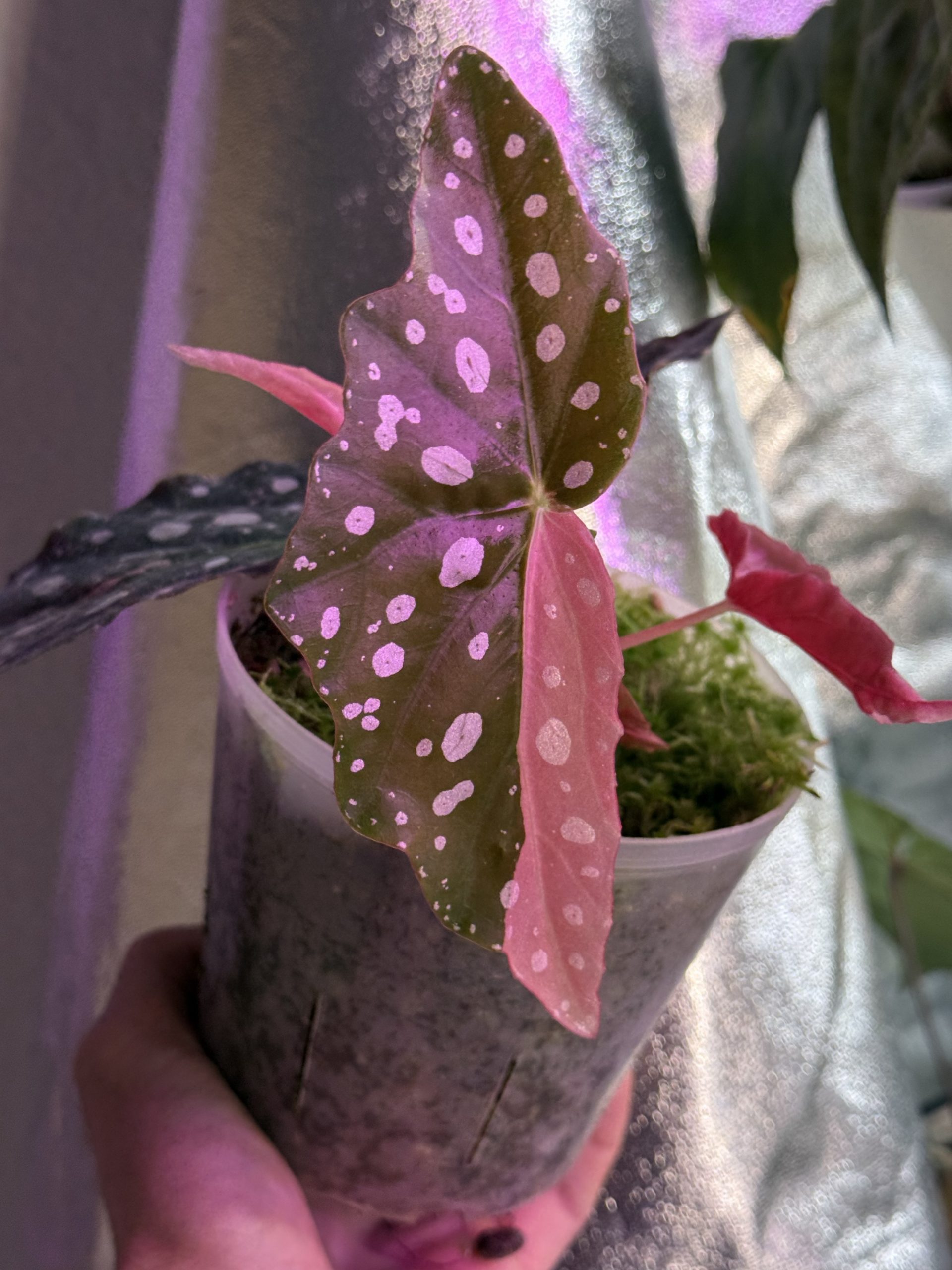 Angeboten wird diese schöne Begonia Maculata Pink Variegata mit mehreren aktiven Austrieben.