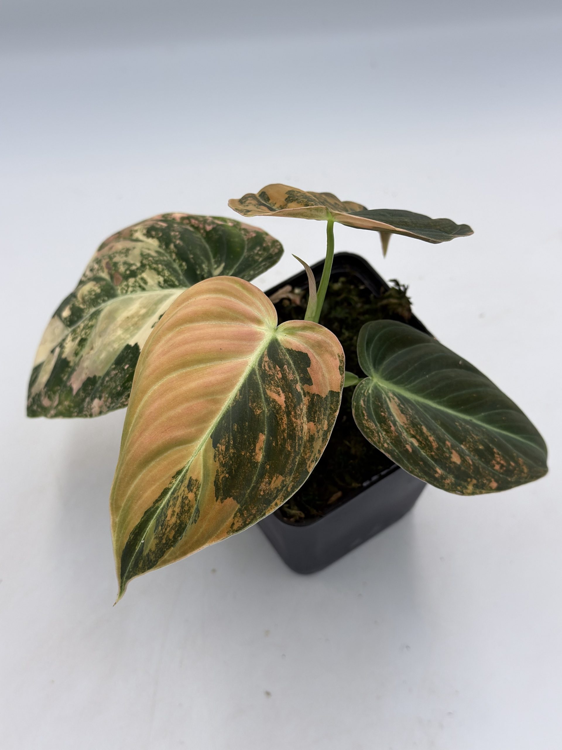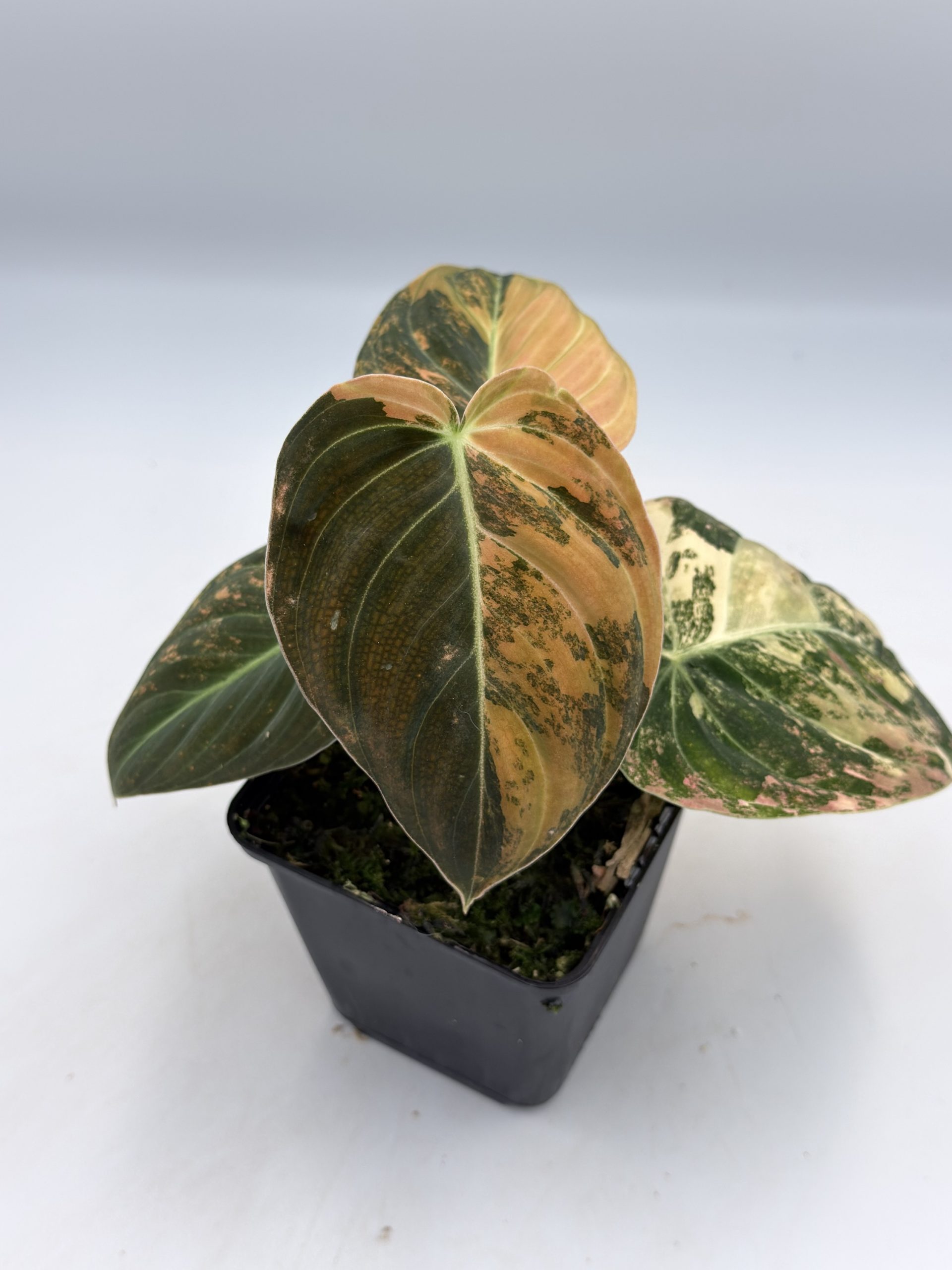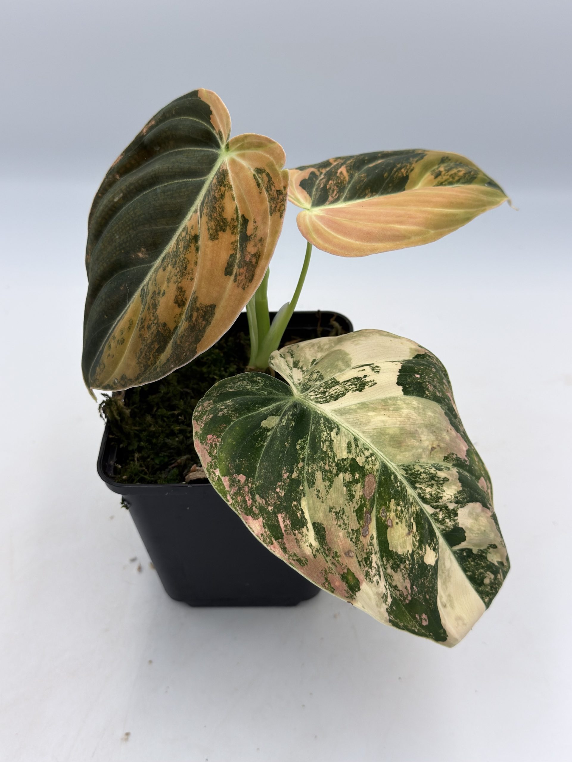Schöner Philodendron Melanochrysum Orange Variegata mit gesunder Panaschierung.